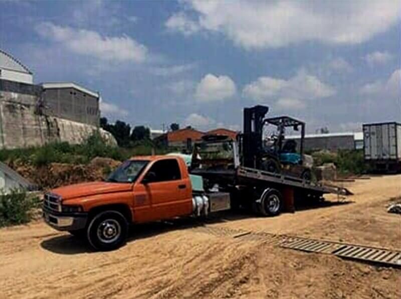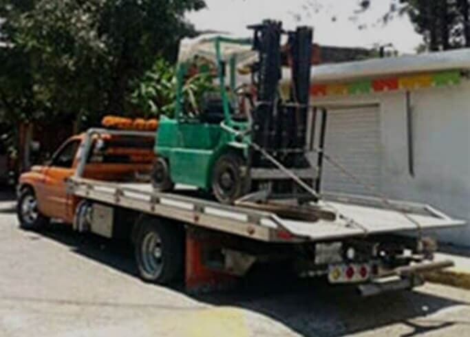 grúas de plataforma para trasladar automóviles, montacargas y microbuses.